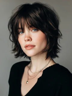 - Textured Bangs: Slightly uneven for movement and modern appeal