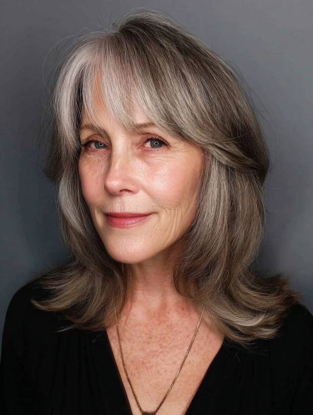 Rather than hiding age, bangs enhance confidence. They frame the face gracefully, blend beautifully with gray or colored hair, and adapt to every stage of life with ease.