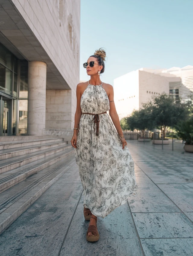 Why It Works: Effortlessly chic while keeping you cool in the summer heat. Neutral tones make this look timeless.