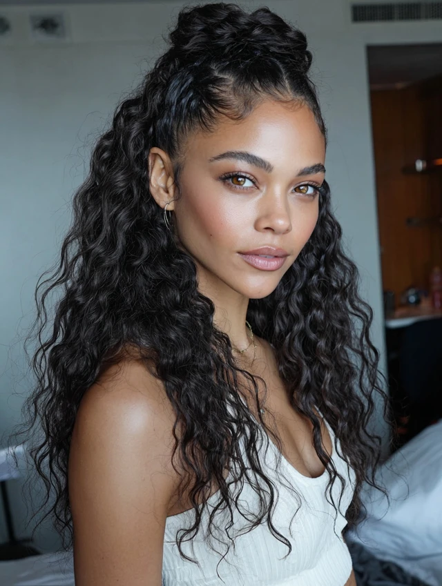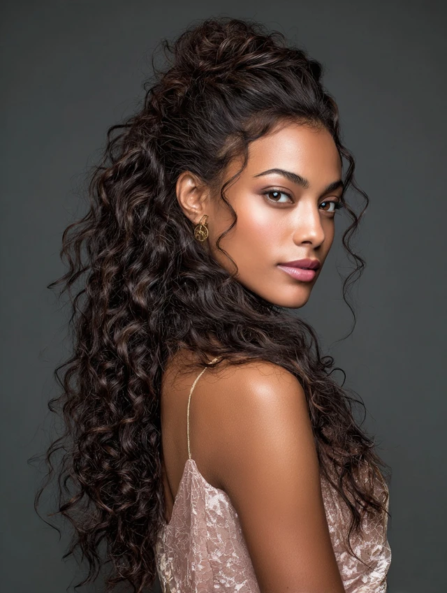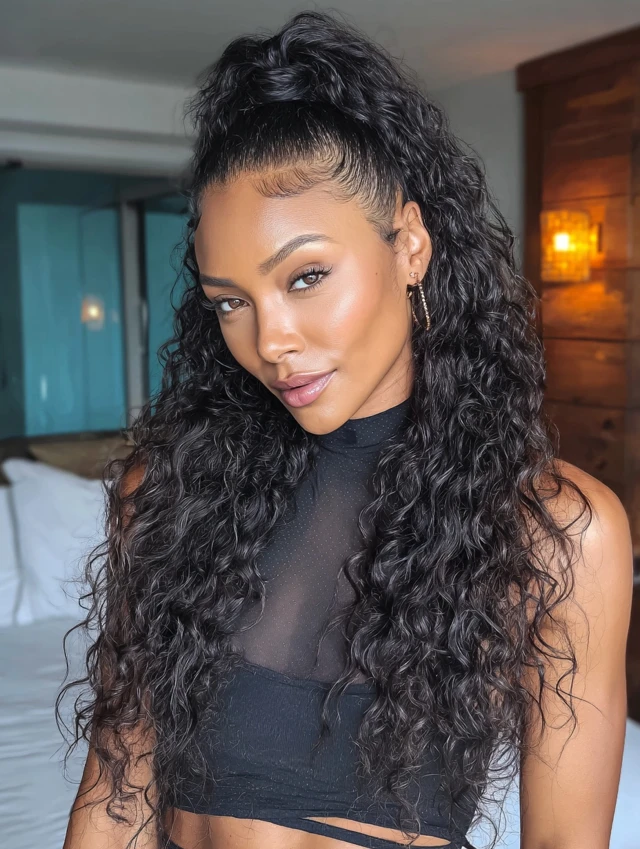 A high ponytail with deep waves gives instant drama, height, and movement.