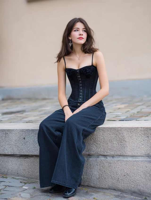 Why It Works: This combo balances structure with ease. The corset defines the waist while wide-leg jeans give effortless flow.