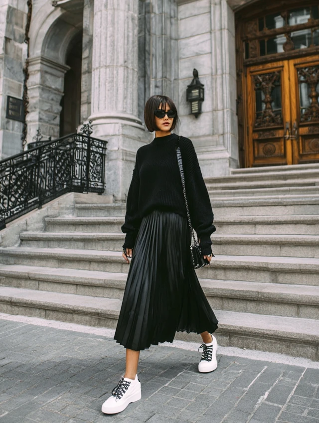 A black pleated skirt is more than just a wardrobe staple—it’s a fashion powerhouse. Flowing, feminine, and endlessly versatile, this piece can transition from casual daytime looks to polished evening ensembles with ease. Whether styled sporty, edgy, or classic, it’s proof that simplicity can be powerful.