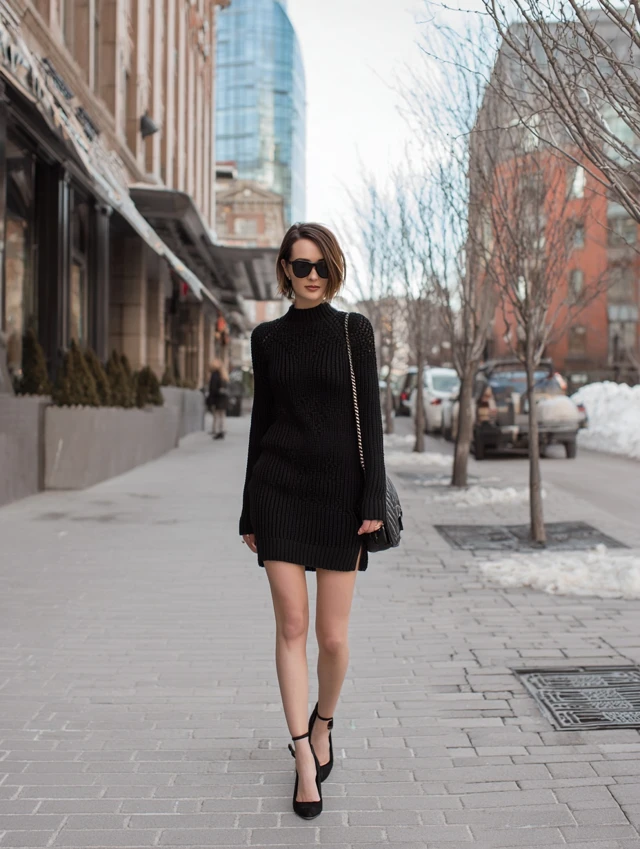 Why It Works: A sweater dress is comfort meets style—effortless but striking.