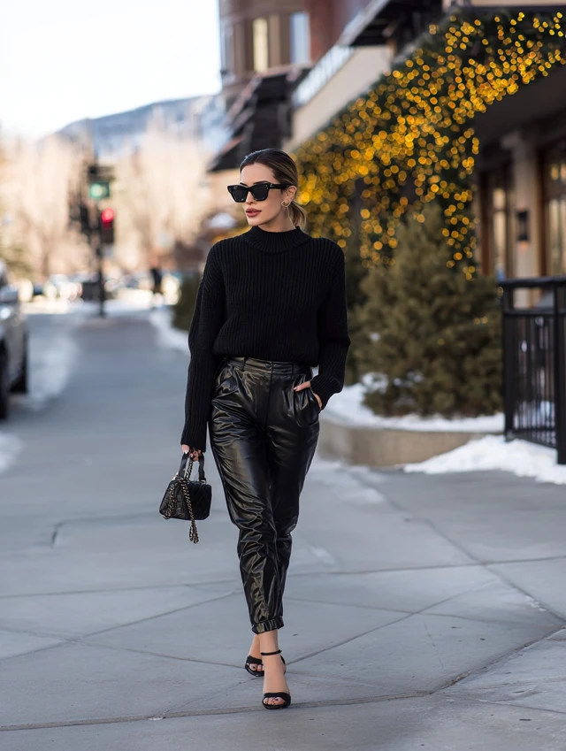5. Black Sweater + Leather Pants