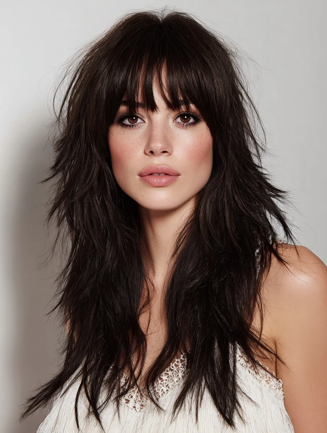 Choppy layers paired with fringe create texture, movement, and a playful attitude.