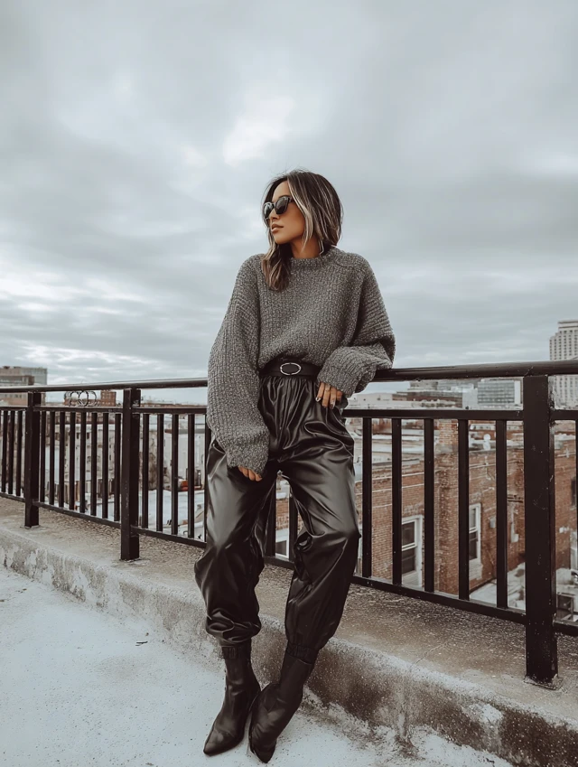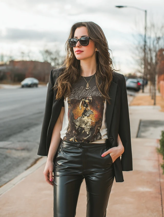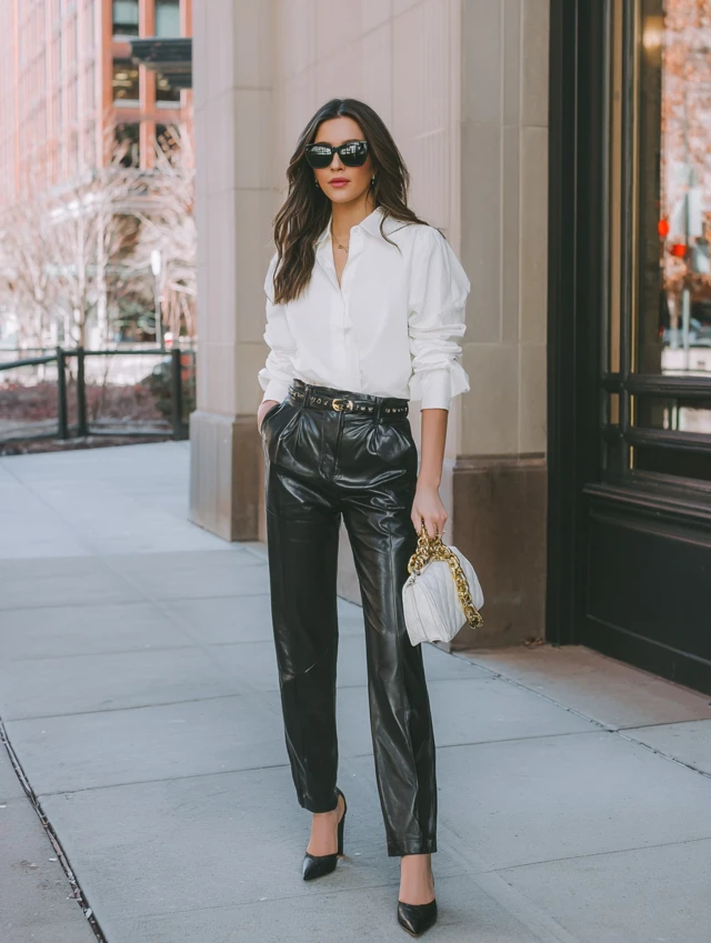 Nailing a leather pants outfit isn’t about overcomplicating—it’s about balance. Here’s the go-to formula:
