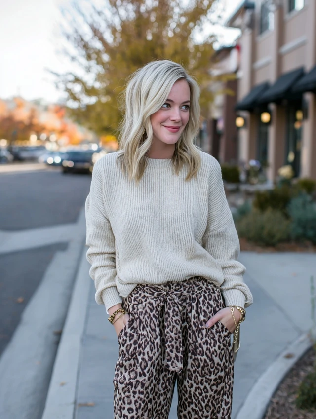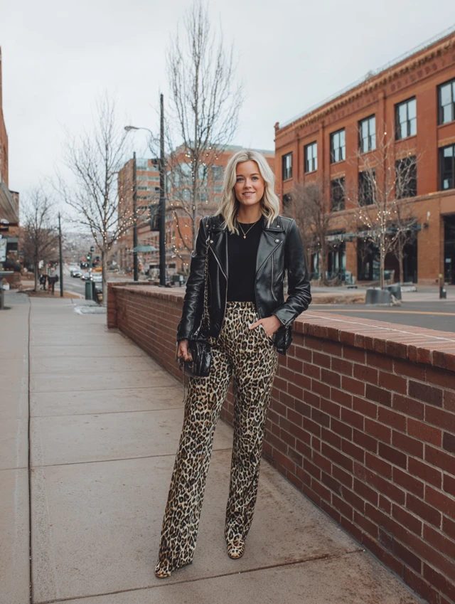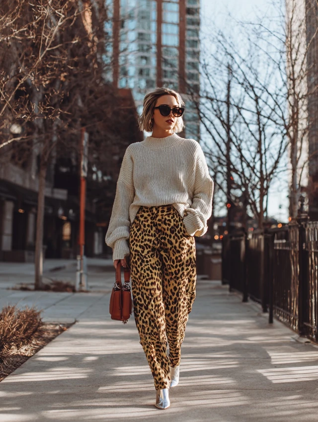 Wearing leopard pants doesn’t have to be intimidating—it’s about balance. Here’s the foolproof formula: