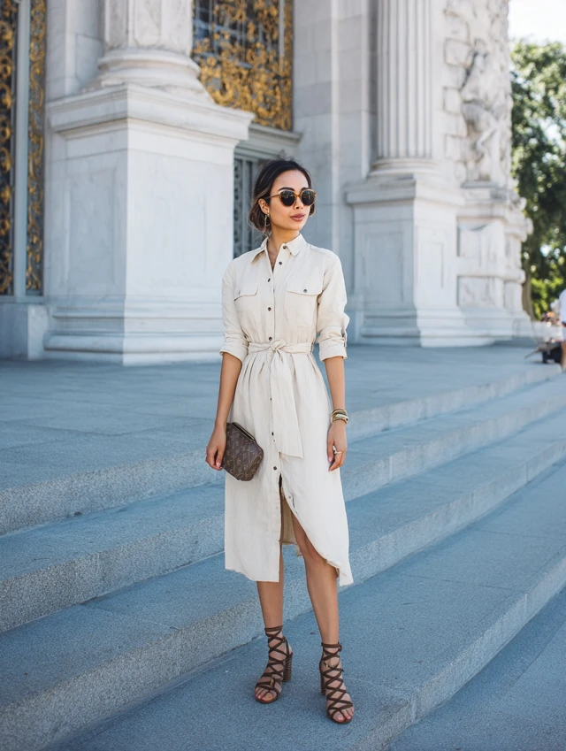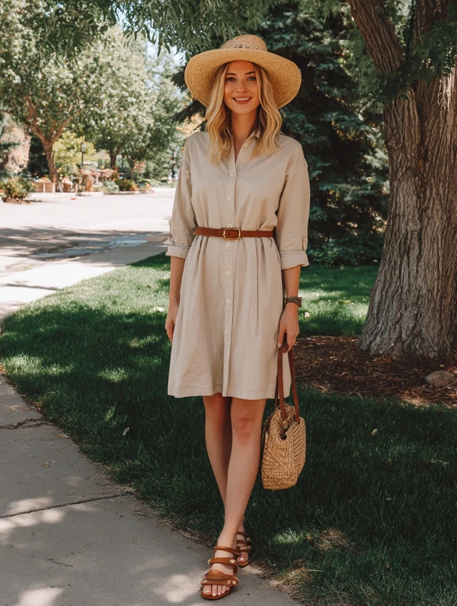 Why It Works: A shirt dress combines tailored polish with breezy comfort.
