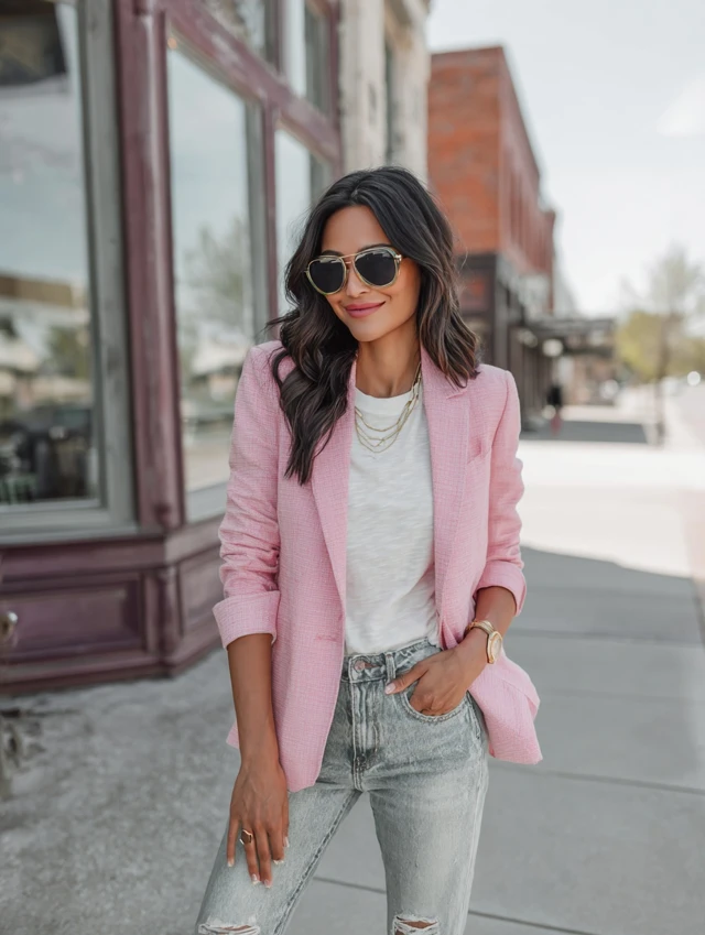 Creating the perfect pink blazer look is about balance—mixing tailored confidence with everyday ease.